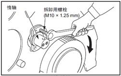 均等的旋入2個拆卸用螺栓,將惰軸拆下。