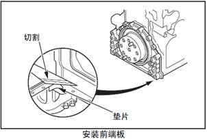 (4) 確認前端板的下部和三菱S6R柴油發動機三菱S6R柴油發動機曲軸箱體的底部是否平齊。小心地剪除露出外面的墊片邊緣。