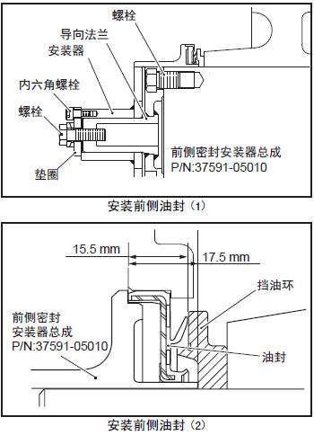 (4) 旋緊導向法蘭上的螺栓,將三菱S12柴油發動機油封裝入前端蓋。