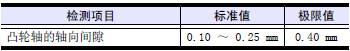 測量三菱S12柴油發動機凸輪軸的軸向間隙。超過極限值時,確定故障部件后更換。