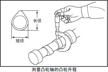 測量三菱R16柴油發動機凸輪軸頸部正交兩個方向的外徑。超過極限值時更換新的三菱R16柴油發動機凸輪軸。