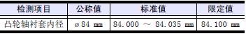 (2) 三菱R16柴油發動機凸輪軸襯套安裝在三菱R16柴油發動機三菱R16柴油發動機缸體的狀態下,測量三菱R16柴油發動機凸輪軸襯套的內徑。超過極限值時更換新的三菱R16柴油發動機凸輪軸襯套。