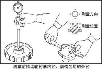 2.1 測量三菱R16柴油發動機后三菱R16柴油發動機惰齒輪襯套內徑和三菱R16柴油發動機后三菱R16柴油發動機惰齒輪軸外徑