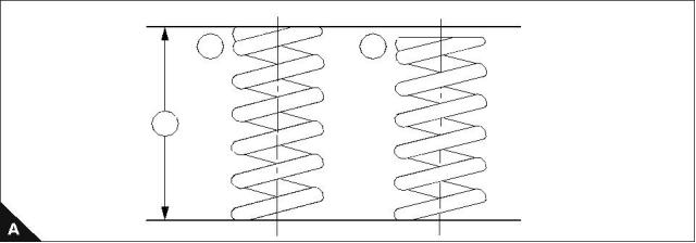1  Visually inspect the valve spring for damage. A new spring (A1) and a worn spring (A2) are shown.