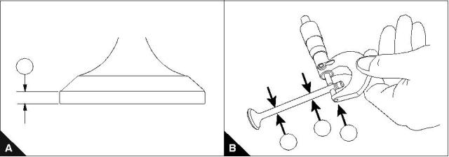 Check the valve stem diameters at positions (B1), (B2) and (B3) with a micrometer. If the diameter is less than