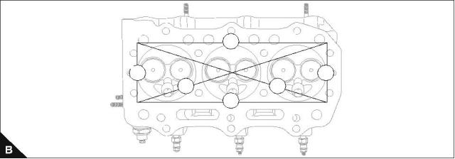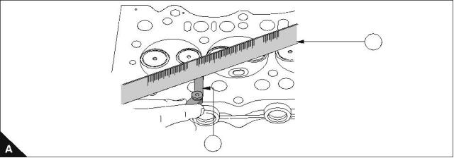 Using a straight edge (A1) and feeler gauge (A2) check the six positions (lines B1 to B6) for distortion. Do not