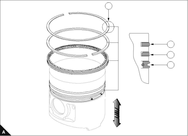 The piston profile shows the No.1 ring (A2), No.2 ring (A3) and the oil scraper ring (A4).