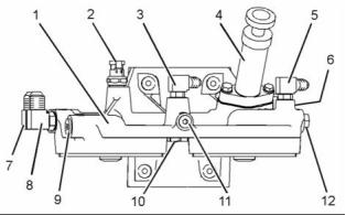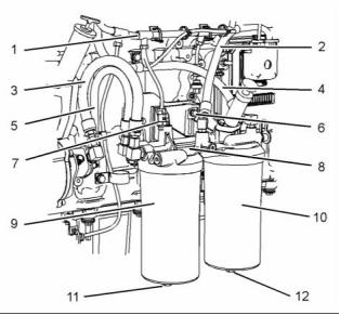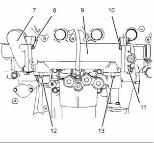 8. Install bolts (12) and (13). Tighten the bolts to a