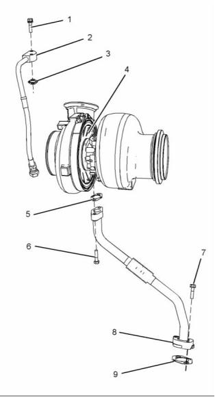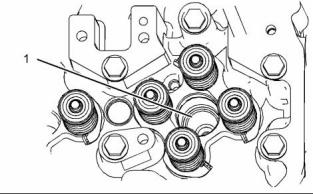 9. Install bolts (1) and (3). Tighten the bolts to a