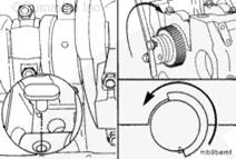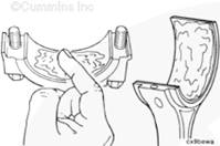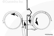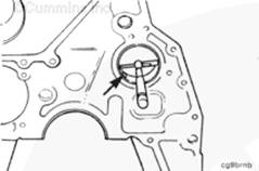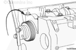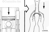 將盤(pán)車(chē)工具(零件號(hào) 3824591)插入飛輪殼中,并使其與飛輪齒圈嚙合。然后可以手持 1/2-英寸棘輪扳手或撬棍,轉(zhuǎn)動(dòng)曲軸。