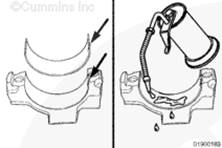 可提供加大尺寸的主軸承和止推軸承以便于使用。當(dāng)需要重新研磨一個(gè)主軸承或者連桿軸承軸徑時(shí),康明斯公司建議對(duì)全部主軸承或者連桿軸承軸徑重新研磨。如果需要加工,請(qǐng)與 Cummins® 特約維修站聯(lián)系。
