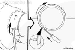 如果使用帶式活塞環(huán)壓縮器,確保帶的內(nèi)側(cè)沒(méi)有掛在活塞環(huán)的缺口并折斷活塞環(huán)。