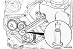 注: 為了在安裝挺桿后便于拆下安裝工具,安裝挺桿前,將安裝工具插入并拔出挺桿數次。