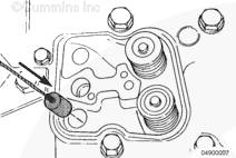 即使活塞冷卻噴嘴輕微地彎曲也能導致康明斯ISB5.9 G CM2180發動機嚴重損壞。如果在解體或組裝過程中活塞冷卻噴嘴彎曲或損壞,則進行更換。