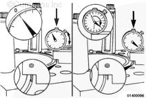 抬起指針并移動深度規塊直至指針接觸到缸體表面。輕輕的向下推指針,直至其接觸到缸體。讀取讀數。