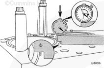 在缸套外徑上四個間距相等的位置讀取缸套突出量。各缸套測量值的變化不得大于 0.03 mm [0.001 in]。