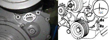 1號缸上止點確認曲軸皮帶輪上的刻線是否與正時齒輪室上的指針對齊。