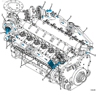 船用發動機上的渦輪增壓器為水冷式。軸承殼體和渦輪增壓器渦輪殼體為水冷式。