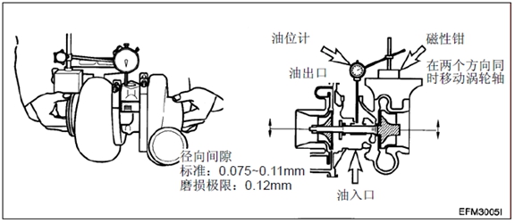 (3) 如果軸向間隙和徑向間隙磨損嚴重,更換或修理渦輪增壓器。