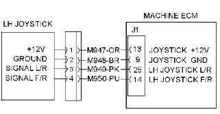 該診斷代碼針對于左右移動的左手操縱手柄控制傳感器。 FMI 03 表示機器 ECM 已確定傳感器輸出信號電壓高于正常值。