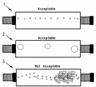 2P-8278管組件(目測表) (1)直徑大約為1.60mm(0.063in)的穩定小氣泡流動是燃油中容許的空氣量。 (2)如果氣泡之間的間隔為2到3秒,則容許直徑約為6.35mm(0.250in)的氣泡。 (3)燃油中氣泡過多是不容許的。 |