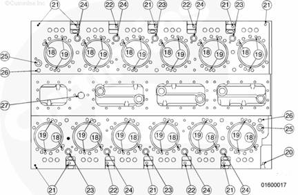 17. 燃油管或軟管管接頭(最靠近缸體前部的孔用于燃油壓力。最靠近缸體后部的孔用于回油。)