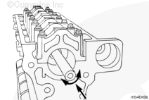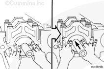 K38 康明斯發動機上的主軸承蓋編號到“7”,而 K50 康明斯發動機上則編號到“9”。將每個蓋安裝到正確位置中。“1”號蓋安裝在缸體前部。蓋中的軸承定位舌槽必須位于缸體中的槽的同一側。 |