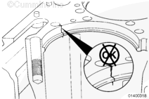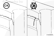 不必機加工缸體以去除可接受的裂紋。如果在初始檢查中發現不可接受的裂紋,則必須機加工沉孔臺階。與 Cummins® 特約維修站聯系。