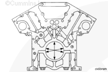 以前的 K38 和 K50 缸體的右后排和左前排上含有一個孔,該孔用于連接曲軸箱呼吸器。在改進了缸體的康明斯發動機上,曲軸箱呼吸器安裝在進氣歧管上。在安裝采用改進式設計的呼吸器時,可以用板和密封墊堵塞老式呼吸器孔。改進過的缸體也帶有孔,這些孔靠近以前的呼吸器孔位置。改進過的缸體上的孔用于連接渦輪增壓器機油回油軟管。