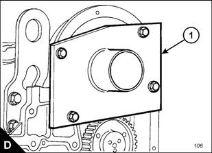 5 Fit the camshaft guide (D), GE5007, to the gear case. Do not tighten the bolts for the guide at this stage.