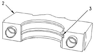 3.從主軸承蓋(2)上拆下下軸瓦(3)。為保證正確安裝,將相應的軸瓦(3)和主軸承蓋(2)放在一起。
