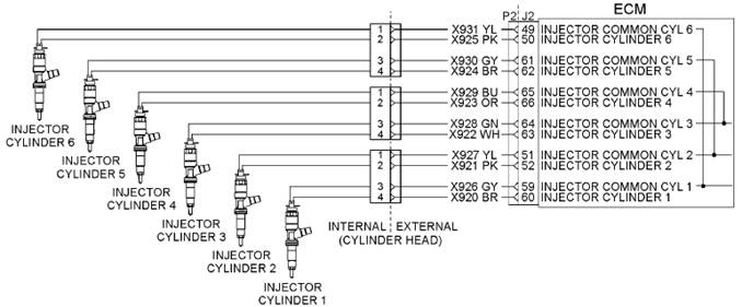 注意事項(xiàng):1缸和2缸相同連接器。缸3缸和4缸相同連接器。缸5缸和6缸相同連接器。