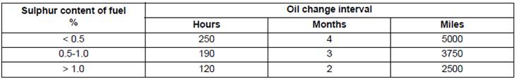 (3) The oil change interval will change with the sulphur content of the fuel (see the table below and "Fuel specification" on page 43).