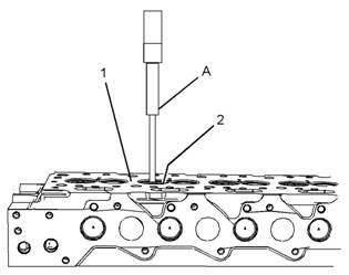 檢查氣門導管(2)的精加工直徑。有關更多資料,請參閱《技術規格》,“缸蓋-氣門”。