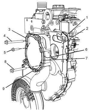 3拆卸 螺栓 (4)、(5) 和 (8)。