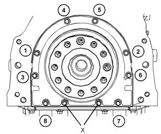 8使用工具(A)擰緊torx螺釘(4)至扭矩為22N·m(195lbin)。按照圖105中所示的順序擰緊torx螺釘(4)。