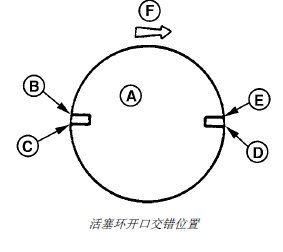 7. 楔形壓縮環(huán)的開(kāi)口位于方形壓縮環(huán)開(kāi)口的對(duì)面。