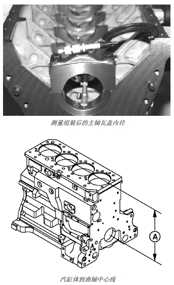 重要提示: 汽缸體鏜孔時,主軸瓦孔中心線到汽缸體頂面的尺寸 (A) 將發生變化。裝裝如小于以上規定的尺寸,活塞可能會接觸缸蓋。只允許具備設備操作經驗的人員進行鏜孔,以保證主軸瓦孔符合技術規格的要求。以下所列新近生產的汽缸體不可用維修軸瓦蓋: