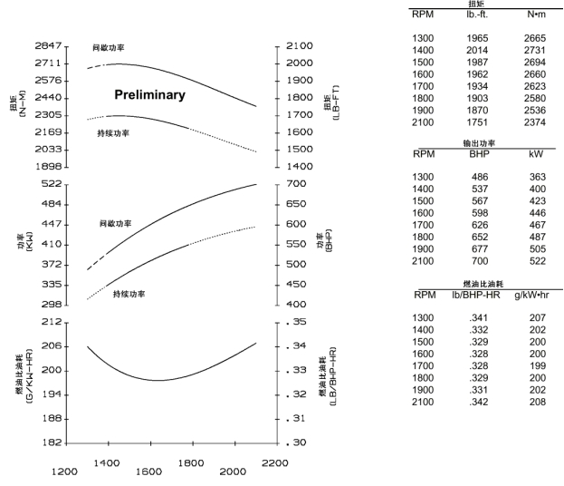 持續(xù)額定功率kW(BHP):413(554) @1800r/min