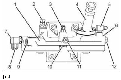 1. 從燃油濾清器底座總成(1)上拆下燃油充油泵(4)。請(qǐng)參閱拆解和組裝,“燃油充油泵-拆卸和安裝”。