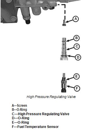 NOTE: High pressure regulating valve is not repairable. Do not disassemble valve. If defective, replace entire assembly.