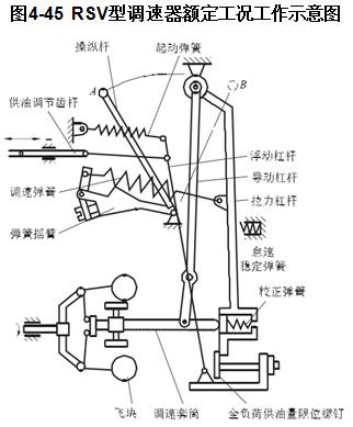 圖4 - 42所示為國產A型噴油泵上采用的RSV型全速調速器,與RAD型兩速調速器基本相同,但為了實現柴油機工作轉速范圍內的全速調節控制,因而增設了以下結構: