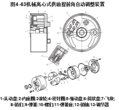 圖4 - 63所示為CA6110-2型機械離心式供油提前角自動調整裝置的結構。