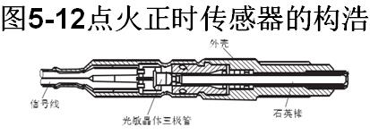 點火正時傳感器,如圖5-12所示。燃燒室內的燃燒光通過石英導入光敏晶體三極管,轉換成電信號,ECU則根據此信號判定實際點火的時刻,并以此修正噴油提前角。