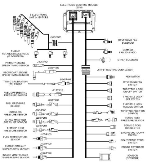 卡特彼勒C15和C18發動機傳感器位置和電氣接頭配件與控制線束顏色標識知識