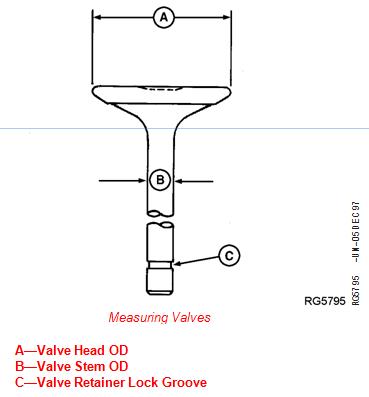 3.測量約翰迪爾強鹿柴油機閥頭外徑(A)。比較閥桿O、 D.(B)用導向器內徑確定間隙,如本組下文所述。