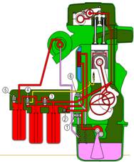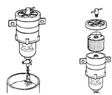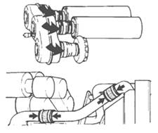 VOLVO沃爾沃柴油機(jī)的維修保養(yǎng)基本知識(shí) 安全注意事項(xiàng) VOLVO沃爾沃柴油發(fā)動(dòng)機(jī)每日檢查項(xiàng)目 養(yǎng)成在起動(dòng)發(fā)動(dòng)機(jī)之前和停機(jī)后直觀檢查發(fā)動(dòng)機(jī)的習(xí)慣。這有助于你及時(shí)發(fā)現(xiàn)燃油、潤(rùn)滑油或冷卻液的泄漏和其它一些已經(jīng)發(fā)生或?qū)⒁l(fā)生的異常情況。 VOLVO沃爾沃柴油發(fā)動(dòng)機(jī)一般的常規(guī)保養(yǎng) a) 檢查/更換空氣濾清器 發(fā)動(dòng)機(jī)停機(jī)后,空氣阻塞指示器如仍滯留紅標(biāo)時(shí),則應(yīng)更換空氣濾清器。更換后應(yīng)按壓阻塞指示器上的按鈕使其指示復(fù)位。 注意!空氣阻塞指示器未顯示紅標(biāo)時(shí),需更換空氣濾清器。被更換的空氣濾清器不能清洗和回用。 重要事項(xiàng)!連續(xù)運(yùn)行時(shí),應(yīng)該每8小時(shí)檢查一次空氣濾清器。 b) 檢查VOLVO沃爾沃柴油發(fā)動(dòng)機(jī)進(jìn)氣管路有無泄漏 檢查進(jìn)氣管路有無裂縫或其它損壞。如有必要應(yīng)予更換。檢查所有的軟管夾箍。 c) 調(diào)整VOLVO沃爾沃柴油發(fā)動(dòng)機(jī)怠速 首先檢查空氣濾清器是否堵塞。檢查當(dāng)油門機(jī)構(gòu)處于怠速位置時(shí),噴油泵上的油門拉桿(1)是否靠在怠速限位螺釘(2)上。還要檢查當(dāng)油門控制桿在最大油量位置時(shí),油門拉桿是否壓在最大供油限位螺釘(3)上。如有必要,則進(jìn)行調(diào)整。 警告提示!靠近正在運(yùn)行的發(fā)動(dòng)機(jī)或在其上工作是有危險(xiǎn)的。要小那些正在旋轉(zhuǎn)的零部件和高溫表面。 d) VOLVO沃爾沃柴油發(fā)動(dòng)機(jī)RSV調(diào)速器 1) 讓發(fā)動(dòng)機(jī)在怠速下運(yùn)行。 2) 如有必要,卸下園項(xiàng)螺帽(1),擰松鎖緊螺母(2),用螺釘(3)調(diào)整發(fā)動(dòng)機(jī)怠速。 如果發(fā)動(dòng)機(jī)空轉(zhuǎn)轉(zhuǎn)速不穩(wěn),應(yīng)該按下述方法調(diào)整其穩(wěn)定性。 1) 拆下園頂螺帽(4)并擰松鎖緊螺母(5)。小心地按順時(shí)針方向擰動(dòng)怠速穩(wěn)定螺(6),直到發(fā)動(dòng)機(jī)轉(zhuǎn)速穩(wěn)定為止。 2) 檢查最高空轉(zhuǎn)轉(zhuǎn)速有否改變,如有改變,則說明怠速穩(wěn)定螺釘(6)調(diào)整過大。 3) 完成調(diào)整后,鎖緊怠速穩(wěn)定螺釘(6),擰上園頂螺帽(4) e) VOLVO沃爾沃柴油發(fā)動(dòng)機(jī)RQV,RQ調(diào)速器 1) 讓發(fā)動(dòng)機(jī)在怠速下運(yùn)行。 2) 如有必要,用怠速螺釘(1)調(diào)整發(fā)動(dòng)機(jī)的轉(zhuǎn)速。 f) 檢查和調(diào)整VOLVO沃爾沃柴油發(fā)動(dòng)機(jī)傳動(dòng)皮帶 傳動(dòng)皮帶的檢查和調(diào)整應(yīng)該在發(fā)動(dòng)機(jī)運(yùn)行后皮帶熱態(tài)時(shí)進(jìn)行。 在張緊充電發(fā)電機(jī)皮帶之前,應(yīng)先擰松螺栓(A),使皮帶在兩皮帶輪的中點(diǎn)處可被壓下10mm,然后再擰緊螺栓(A)。成對(duì)工作的皮帶磨損后應(yīng)同時(shí)更換。 風(fēng)扇皮帶有自動(dòng)張緊器,不需要調(diào)整。但是必須檢查皮帶的狀況。如有必要,予以更換。 VOLVO沃爾沃柴油發(fā)動(dòng)機(jī)潤(rùn)滑系統(tǒng) 潤(rùn)滑油的更換周期取決于潤(rùn)滑油的品質(zhì)和燃油的硫含量,在40到500小時(shí)之間不等。要注意潤(rùn)滑油的更換周期決不可超過12個(gè)月。 如果要求潤(rùn)滑油的更換周期比下表所列時(shí)間更長(zhǎng),則潤(rùn)滑油的性狀必須由潤(rùn)滑油制造廠商作定期檢測(cè)。 VOLVO沃爾沃柴油發(fā)動(dòng)機(jī)潤(rùn)滑油 注意!只要能滿足上述要求,礦基的、半合成和全合成潤(rùn)滑油都可以使用。 1)必須使用TBN14-20潤(rùn)滑油 VDS=Volvo發(fā)動(dòng)機(jī)潤(rùn)滑油規(guī)格 ACEA=歐洲汽車制造商協(xié)會(huì) API=美國石油學(xué)會(huì) VOLVO沃爾沃柴油發(fā)動(dòng)機(jī)機(jī)油粘度 應(yīng)根據(jù)穩(wěn)定的外界溫度,按此圖表選擇粘度合適的潤(rùn)滑油。*指合成或半合成潤(rùn)滑油。 檢查潤(rùn)滑油油位 確保油位在MIN(最低)和MAX(最高)標(biāo)記之間。 重要事項(xiàng)!連續(xù)運(yùn)行時(shí)應(yīng)每隔8小時(shí)檢查一次油位。 檢查靜態(tài)未運(yùn)轉(zhuǎn)發(fā)動(dòng)機(jī)的油位時(shí),應(yīng)查看油標(biāo)尺上標(biāo)有“STOP”(停機(jī))的那一面(至少等發(fā)動(dòng)機(jī)停止運(yùn)行3分鐘后)。 警告提示!靠近運(yùn)行中的發(fā)動(dòng)機(jī)或在其上工作是有危險(xiǎn)的。要小心那些旋轉(zhuǎn)著的零部件和灼熱表面。 更換VOLVO沃爾沃柴油發(fā)動(dòng)機(jī)潤(rùn)滑油和潤(rùn)滑油濾清器 必須遵守推薦的潤(rùn)滑油更換周期,并必須同時(shí)更換潤(rùn)滑油濾清器。 a) 徹底清潔濾清器安裝座,以免更換濾清器時(shí)污物進(jìn)入發(fā)動(dòng)機(jī)。 b) 使發(fā)動(dòng)機(jī)運(yùn)行至正常的工作溫度。 警告提示!高溫潤(rùn)滑油和灼熱表面會(huì)造成燙傷。 c) 拆下底部螺塞,放盡潤(rùn)滑油。 d) 換用新墊片后裝上底部螺塞。 e) 拆下濾情器 (1)和旁通濾情器(2)。檢查并確保發(fā)動(dòng)機(jī)的接合面上無殘留墊片。給新的濾清器加注潤(rùn)滑油,并在新墊片上薄施一層潤(rùn)滑油。用手?jǐn)Q緊濾清器直到壓住墊片,然后再擰緊半圈(不要擰得過緊!)。 f) 加注潤(rùn)滑油至正確油位。不得超過MAX(最高)油位。 g) 起動(dòng)發(f