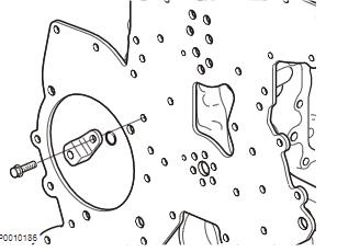 4 將新的 O 形圈安裝到曲軸上并進行潤滑。用相同的潤滑劑潤滑齒輪的外部。將沃爾沃發動機齒輪定位銷安裝到曲軸孔中并確保油泵齒輪與曲軸齒輪嚙合。安裝螺栓并交替擰緊這些螺栓,從而使齒輪不歪斜。根據特殊緊固扭矩 8 頁進行扭矩緊固。