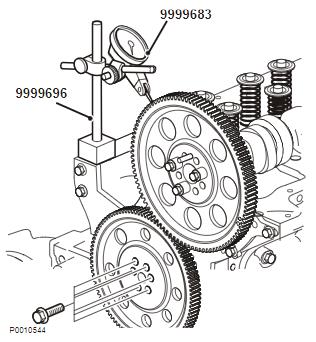 20 插入新的曲軸密封件;參見曲軸密封,更換(后部) 214 頁。安裝飛輪。檢查飛輪是否變形;參見飛輪,指示 202 頁。