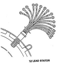12-導線發電機可以連接成提供單相電源。這種接法被稱為“狗腿”。用這種接法,120與240伏的單相電路都可以得到。